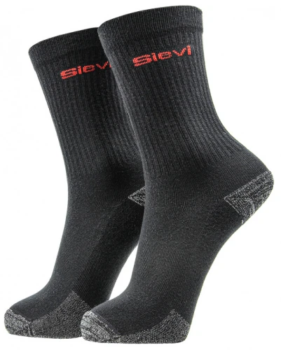 Chaussette en coton de Sievi durable et gardant sa forme maintenant également agréée ESD. Grâce à la quasi-absence de couture, elle n’irrite pas le pied. Matériaux : 66 % coton, 31 % polyamide, 2 % élastane et 1 % fibre de carbone.