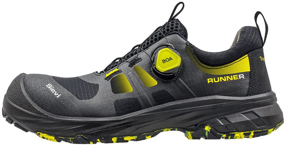 La structure sans métal de la Runner Roller intègre une protection des orteils en composite , qui isole bien de la chaleur et du froid, et une protection antiperforation flexible en textile. Une excellente adhérence et une haute résistance à l’usure sont assurées par la semelle antidérapante Sievi TractionPro®, dont le profil moderne évasé vers le bas ajoute au confort et améliore l’amortissenent tout particulièrement au niveau des zones de soutien du pied.
