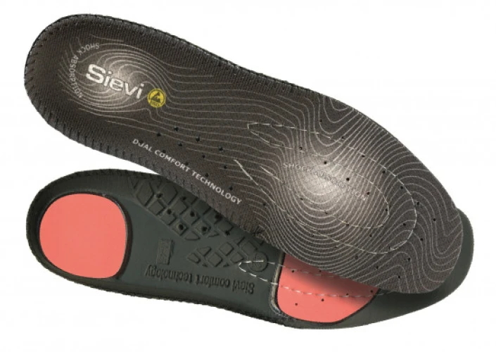 La semelle Dual Comfort consiste en une couche de surface supérieure dans une matière douce et agréable au contact, une couche intermédiaire aérée, hydrophile et séchant rapidement et une couche inférieure légère, à mémoire de forme et amortisseuse en EVA. Les parties du talon et du capiton comportent un coussin en PORON® qui amortit les chocs extérieurs et la charge. Antistatique et agréée ESD. Doit être lavée à la main.
